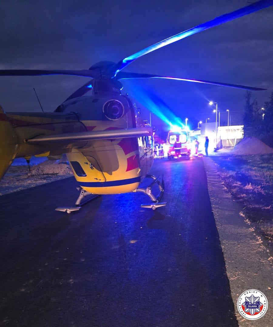15-letni chłopiec, poruszając się hulajnogą elektryczną w kasku typu motocross, z nieustalonej przyczyny uderzył w betonowy murek. Na miejsce wezwano śmigłowiec Lotniczego Pogotowia Ratunkowego, który przetransportował go do szpitala.