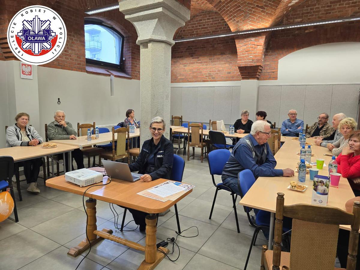 Oławscy policjanci poprowadzili spotkanie z seniorami z Polskiego Związku Emerytów, Rencistów i Inwalidów. Celem spotkania było uświadomienie seniorów o współczesnych zagrożeniach i przekazanie im wiedzy na temat różnych metod działania oszustów, jakie mogą spotkać ich w codziennym życiu. Ponadto uczestnicy szkolenia zdobyli wiedzę teoretyczną oraz praktyczną z zakresu jak rozpoznać stan zagrożenia zdrowia i życia. Jak wezwać pomoc, o czym pamiętać i jak sprawdzić stan poszkodowanego. Szkolenie było dostosowane do indywidualnych potrzeb uczestników.