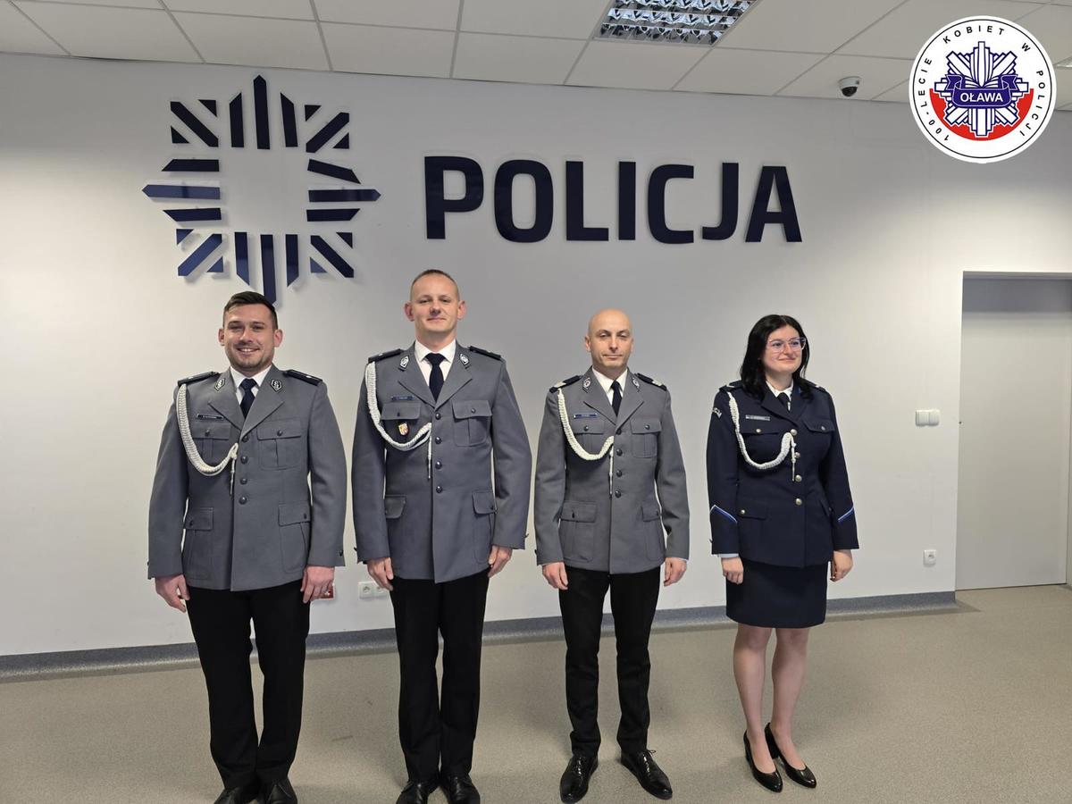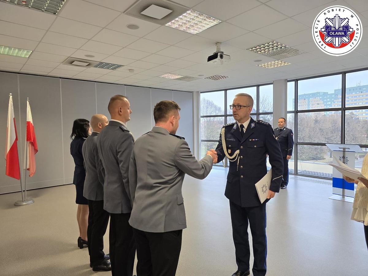 Podczas uroczystości Komendant Powiatowy Policji w Oławie, nadkom. Grzegorz Maciąg, wręczył akty mianowania na stopnie: