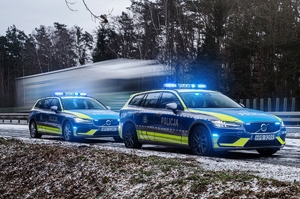 Volvo V60 to pojazd z silnikiem o pojemności 2.0 l, mocy 197 KM, automatyczną skrzynią biegów oraz napędem w technologii miękkiej hybrydy. Dynamiczne osiągi i niezawodność sprawiają, że radiowóz doskonale sprawdzi się zarówno w codziennych patrolach, jak i w sytuacjach wymagających szybkiej reakcji.